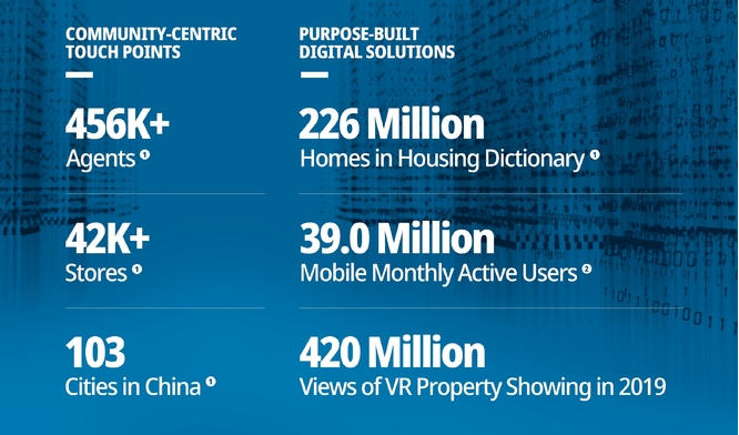 2018年,鏈家升級為貝殼找房,主要業務為客戶提供新房和二手房交易、房屋租賃、房屋裝修、房產金融解決方案及其他服務。2019年,貝殼共完成超過220萬單交易,總計產生人民幣21280億元的交易總額(GTV),成為中國最大的房地產交易和服務平臺。