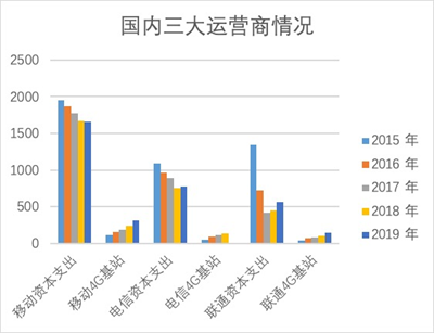 以4G時代國內(nèi)三大運營商的資本支出和基站建設進程為例,隨著2013年12月4G牌照發(fā)放,2014年中移動4G基站數(shù)量達到72萬,2015年三大運營商的建設資金投入達到峰值,隨后三大運營商的資本支出逐年降低,但4G基站的建設數(shù)量持續(xù)增長。