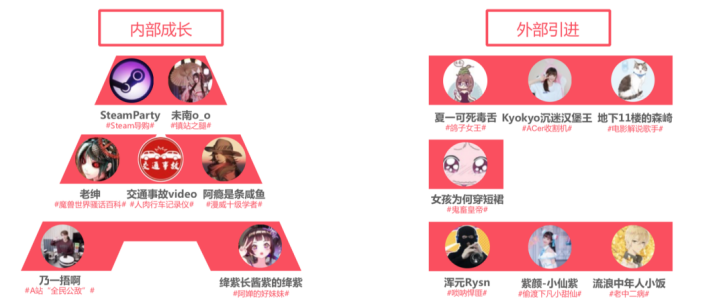 對比之下,B站要做年輕人的泛娛樂主流社區(qū),把核心的二次元內(nèi)容化為一個(gè)子集,同時(shí)為頭部UP主立人設(shè)引爆流量,擴(kuò)大用戶基本盤。